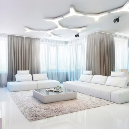 Kết quả là, không gian khá rộng rãi và không có gì có thể làm xao nhãng sự chú ý của bạn. Cách trang trí này cũng mang lại thêm một lợi ích nữa: bụi sẽ được giữ lại trong những góc nhà và bạn sẽ dễ dàng dọn dẹp sạch sẽ hơn.
